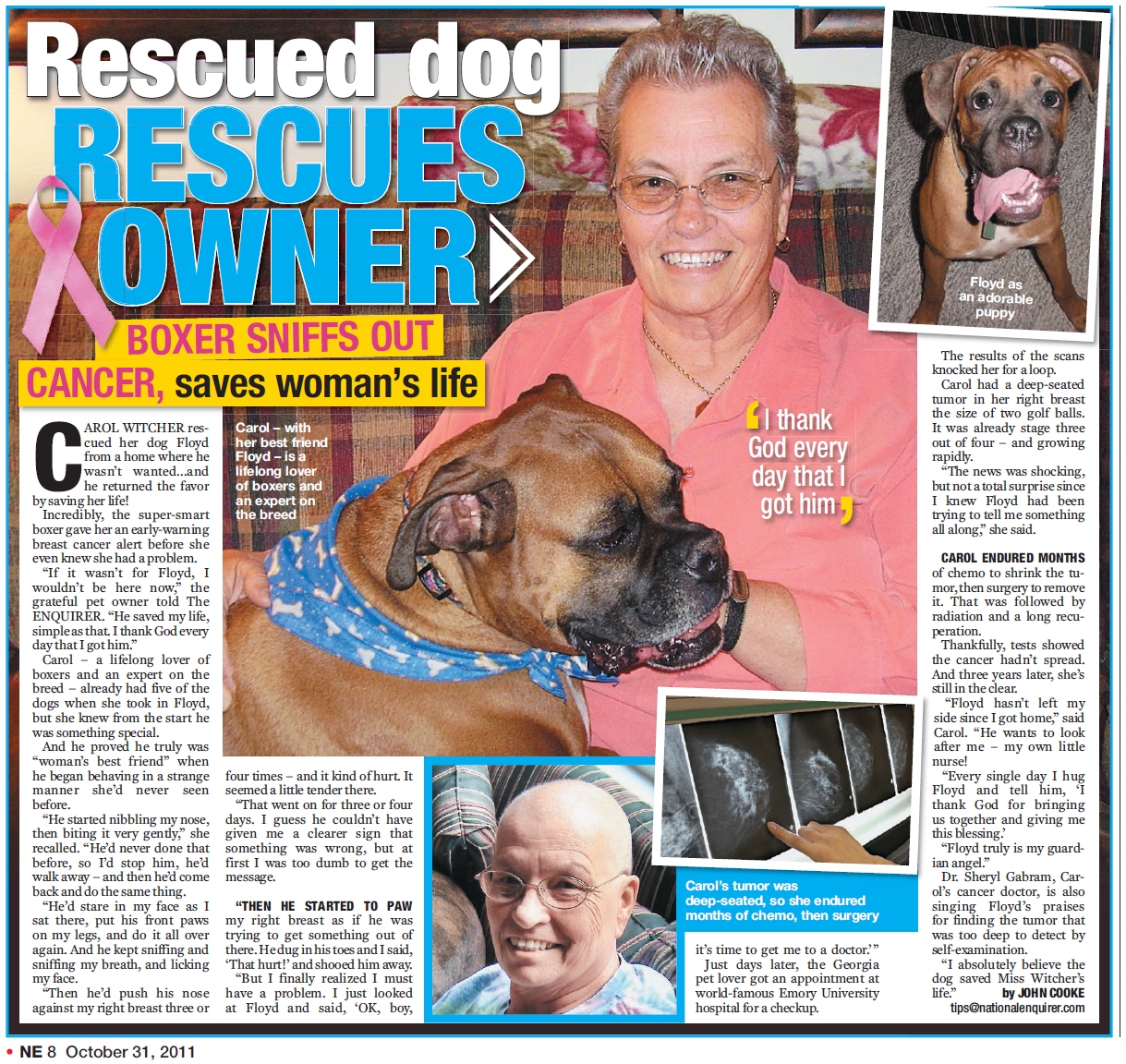 Then there was the call from the National Enquirer. Carol certainly considered turning that one down as she envisioned the headline being something like "Alien Dog removes Cancer from Woman" but then decided the best course of action was to ask for approval of what would be printed. Fortunately they obliged and did an awesome article.