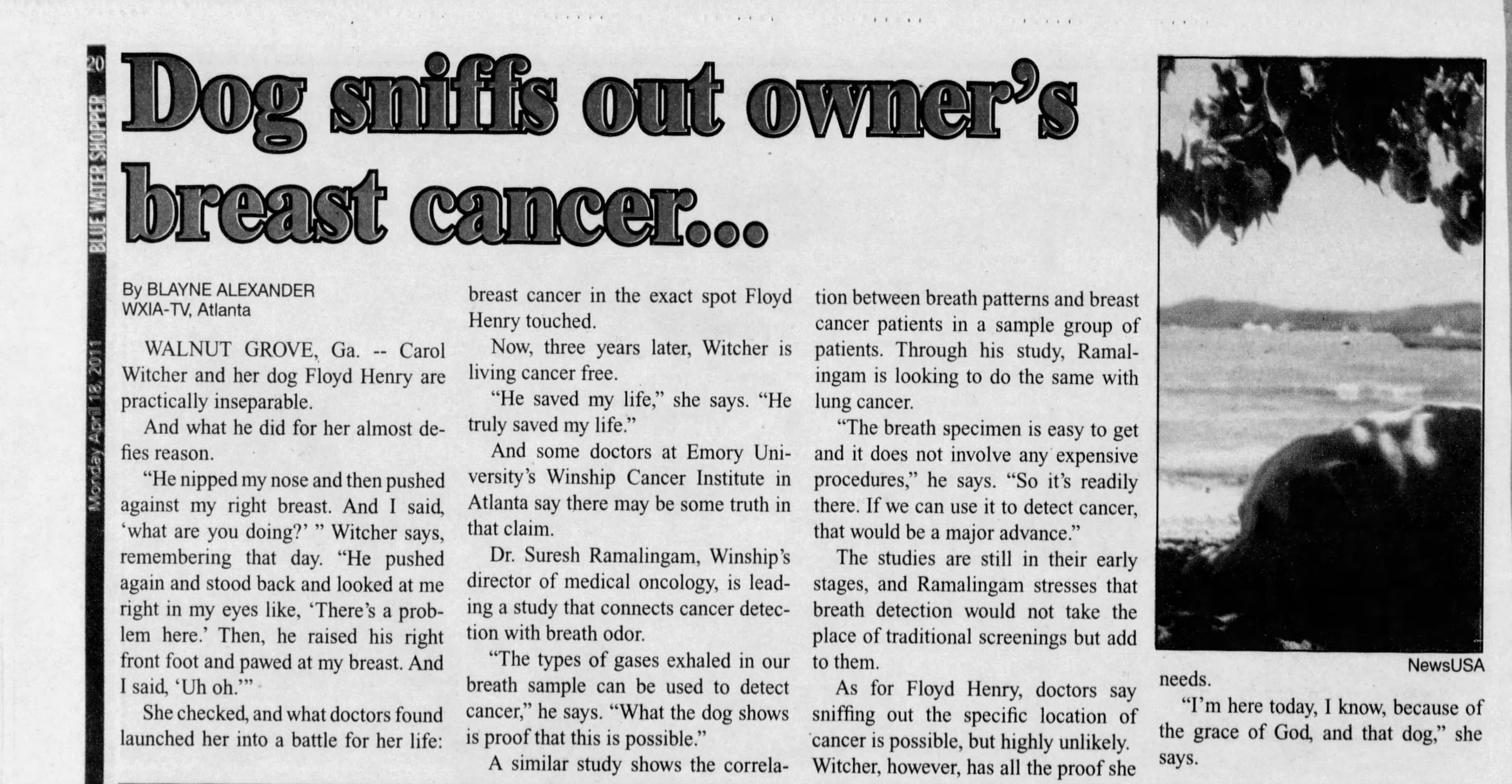 This was one of the first. It appeared in The Walton Tribune in March of 2011. Brian Arrington saw the infomercial done by Emory and Georgia Tech in an effort to get some funding for the next phase of the Breath Study and wanted to interview Carol and of course meet Floyd Henry.